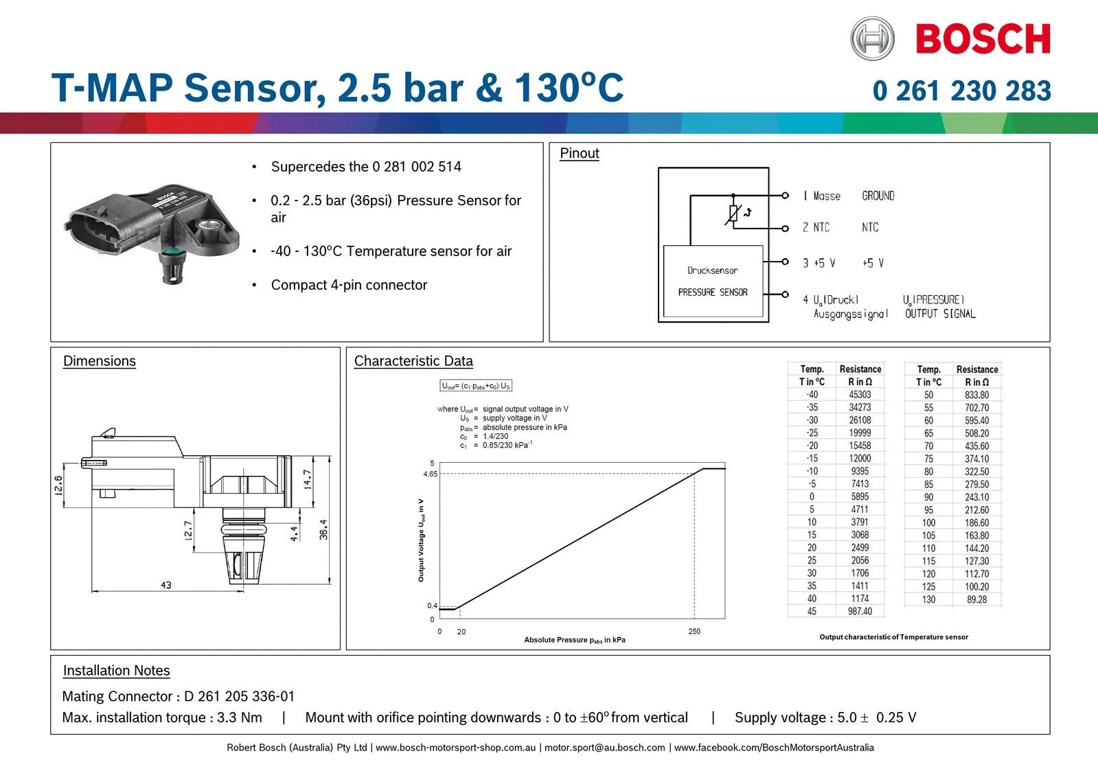 T-MAP Sensor, 2.5 bar & 130 deg C
