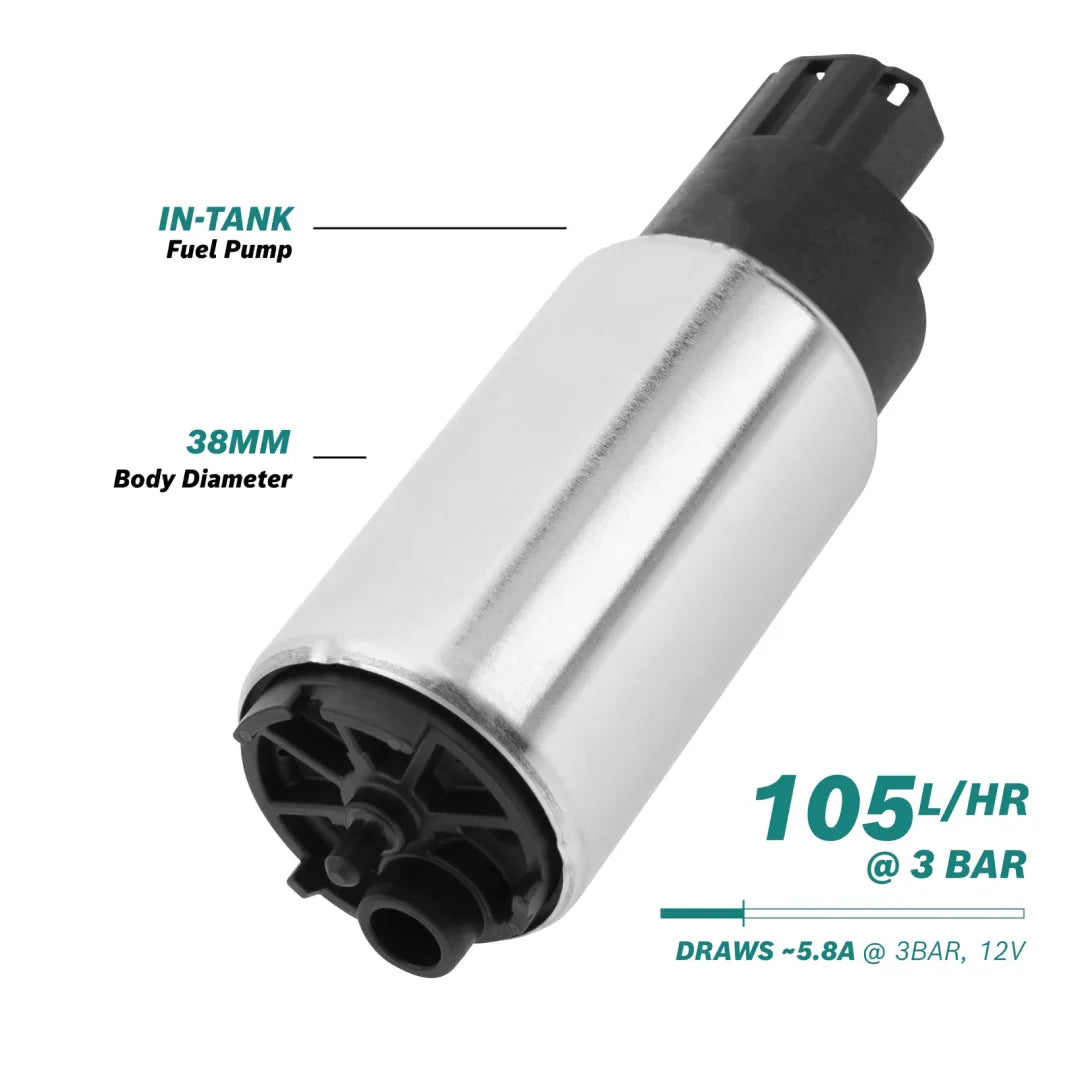 Popular BOSCH 38mm Fuel pump - suits a majority of Japanese EFI cars and can usually be easily adapted to many more.