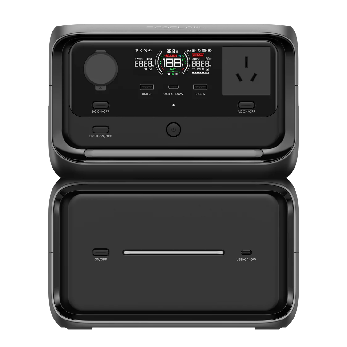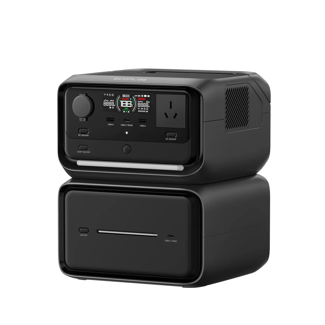 Level up your power with RIVER 3 Plus with an Extra Battery. RIVER 3 Plus can handle either the EB300 (286Wh) or the EB600 (572Wh). Just stack them to get up to 858Wh of pure energy.