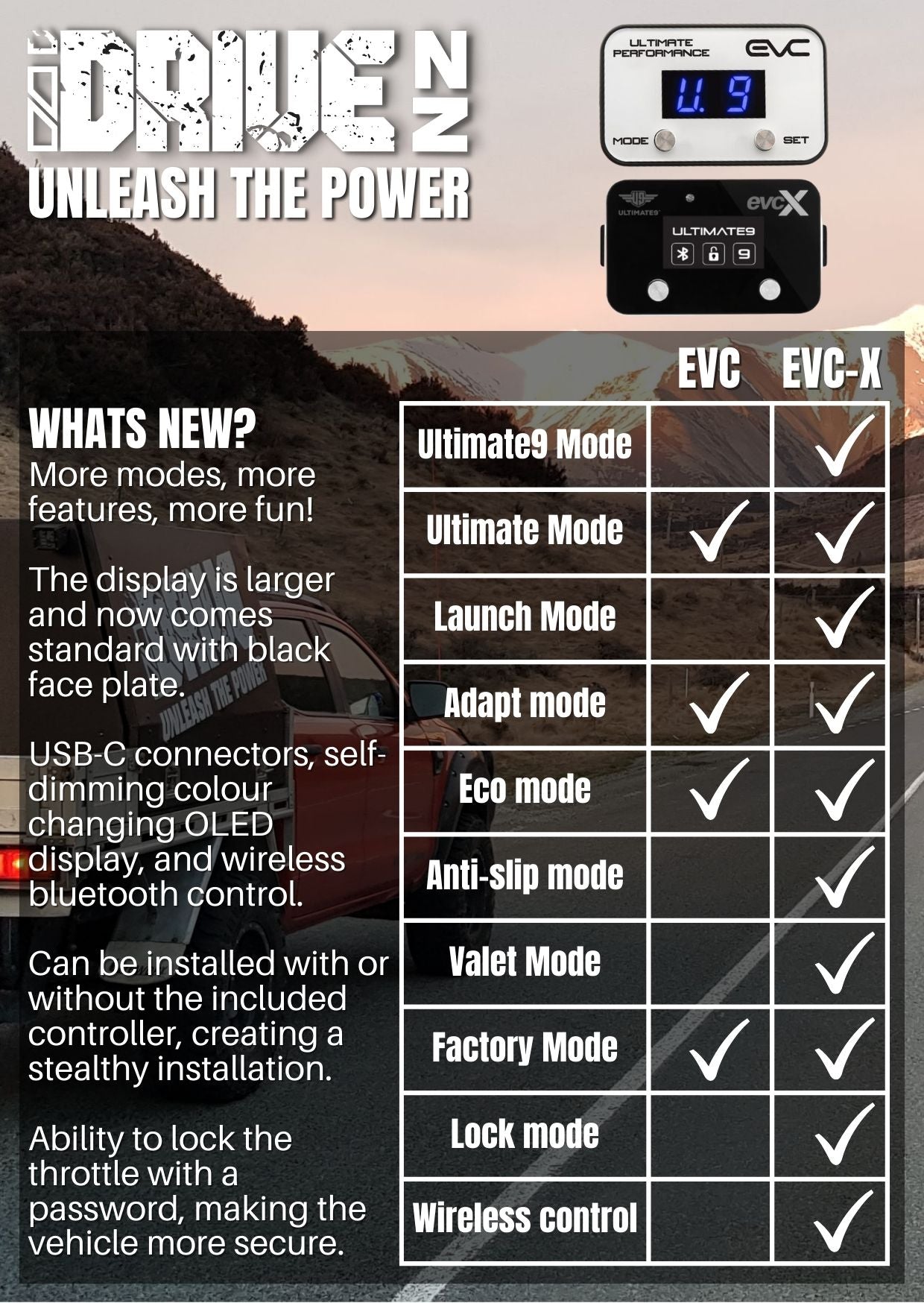 Our EVC Throttle Controllers are a plug and play throttle controller that gives you complete control over the responsiveness of your vehicle. It does this by providing new points of reference for your throttle mapping, introducing either a sharper or duller throttle curve depending on what mode/setting has been selected.