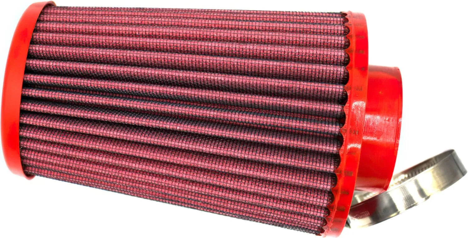 The BMC air filter is composed of a metallic mesh containing an oiled multilayer cotton filtration material. This guarantees a high level of filtering efficiency and a limited loss of air pressure. The oil used gives the material its sticky adhesive characteristic which aids in the retention of air impurities without compromising or blocking air flow penetration. This also creates a continuous filtering process. The cotton filtrating element is contained within an external support frame which interfaces with the air-box and allows it to be securely installed. Every stage of the production process, from design to manufacturing, is carried out in Italy by Italian engineers and uses the finest quality materials.