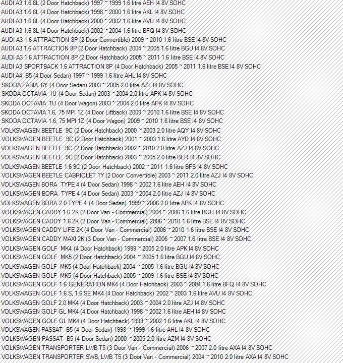 IGNITION LEAD SET AUDI/VW 1.6, 2.0